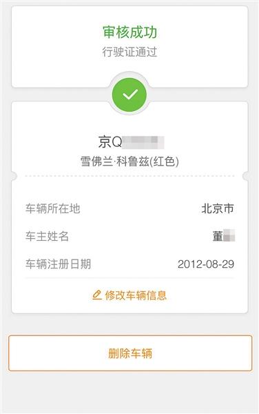 “有网约车平台车辆信息验证环节还存在漏洞。”何奇说,只要车牌号、车主姓名、车辆注册日期能对上号,车型和车身颜色随意填写也能通过验证。