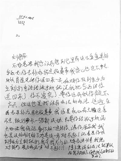 嫌疑人写给失主的信。 本报记者 雷键 通讯员 刘井发 摄