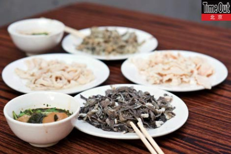 等掌柜传到刘江云、杨玉萍夫妇手里,这两口子把自家宅子、自家老北京小吃和自家祖上留下的鸭子渊源一整合,愣是把一个小饭馆儿做成了每日需排队等位的私家北京菜馆——最爱它的人除了北京本地街坊,还有大批老外来此寻找纯正北京味道——菜单上除了“果木烤鸭”,另有密密麻麻的老北京小吃,灌肠、爆肚、炒肝什么都不必说,烤羊肉蘸芝麻盐(38元)都算大菜了,纯老北京吃法,芝麻盐,多怀旧啊!而炒猫耳朵和炒、糊塌子、京味扒糕、老北京豆酱、老北京“拨鱼儿”等,恐怕就得是骨灰级的老北京才能真正消受其中的妙处。