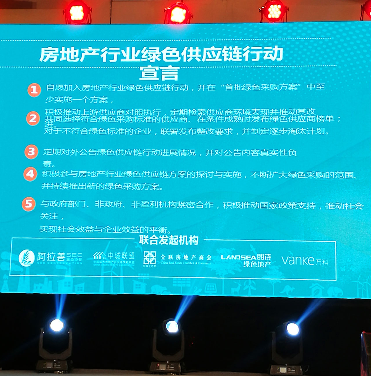 会议期间,朗诗绿色地产董事长田明介绍了由阿拉善、中城联盟、全联房地产商会、朗诗绿色地产、万科集团等发起的“房地产行业绿色供应链行动”,北新建材和70多家房地产公司一起成为行动宣言联署企业,将致力于实现全生命周期的绿色企业,共同推动房地产行业的绿色发展。