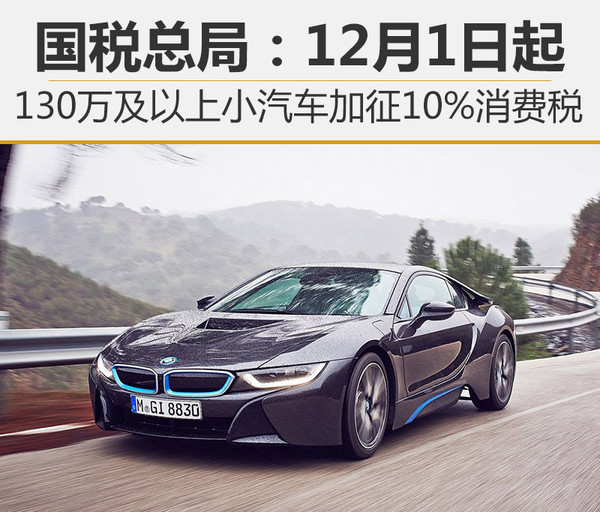 以购买官方指导价为198.8万元(含增值税17%)的BMW i8为例,12月1日起消费者需额外缴纳的消费税约为16.99万元。那么16.99万元的额外加征消费税怎么来的呢?看这里:198.8÷1.17×10%≈16.99万元。要知道,原本在进口环节发动机排量为1.5升(实际1499毫升,在1.0升到1.5升之间,消费税率为3%)的BMW i8,它的官方指导售价198.8万元当中仅包含约5.1万元的消费税(198.8÷1.17×3%≈5.1万元)。