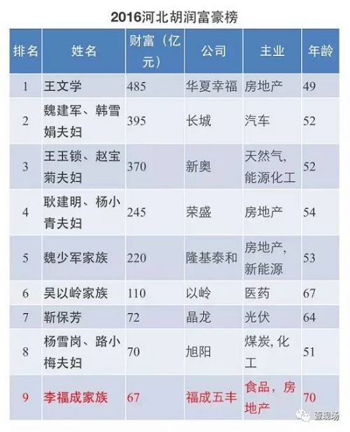 北青报记者了解到,李某祖父李福成在2016河北胡润富豪榜上排名第9位,系福成肥牛创始人,名下有福成投资集团有限公司、福成国际大酒店有限公司等多家企业。据福成投资集团有限公司(以下简称“福成集团”)官网介绍,福成集团成立于2006年6月,是一家以农牧业综合开发、食品加工、餐饮服务、房地产开发、农村建设和改造、金融、商贸、物业管理以及其它项目的资本投资为一体的大型综合性企业集团。其前身是李福成于1987年贷款5000元创办的三河兴隆庄福成养牛场。目前,旗下已包括河北福成五丰食品股份有限公司、河北福成房地产开发有限公司、福成国际大酒店有限公司、三河福成酿酒有限公司、兴隆县福成水泥有限公司等数十个分支企业。